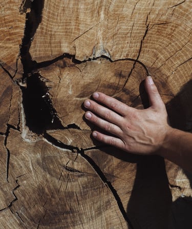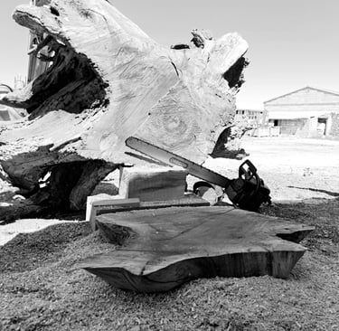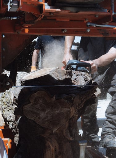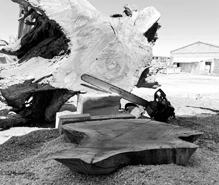 No trabajamos con piezas en serie. Cada tronco que entra en nuestro taller es único: su edad, su origen y su entorno le han dado una identidad irrepetible. Cuando lo cortamos, cada veta revela un paisaje distinto, como un mapa natural que guarda la memoria del árbol y el lugar donde creció.